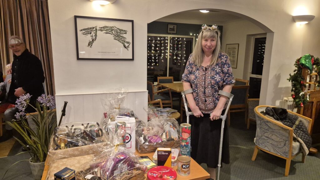 Special thanks go to the bar & catering team who managed service mostly using volunteers from the GC as they were suffering from several staff absentees through illness yet wanted our event to go ahead as planned; I think the majority of the diners were unaware of the chaos you had to endure. However, our ex-chairman, pressed into coffee-serving duties won’t be asked again, having tripped whilst carrying a tray of drinks and sent flying across the the room; let’s leave it to the professionals in future.