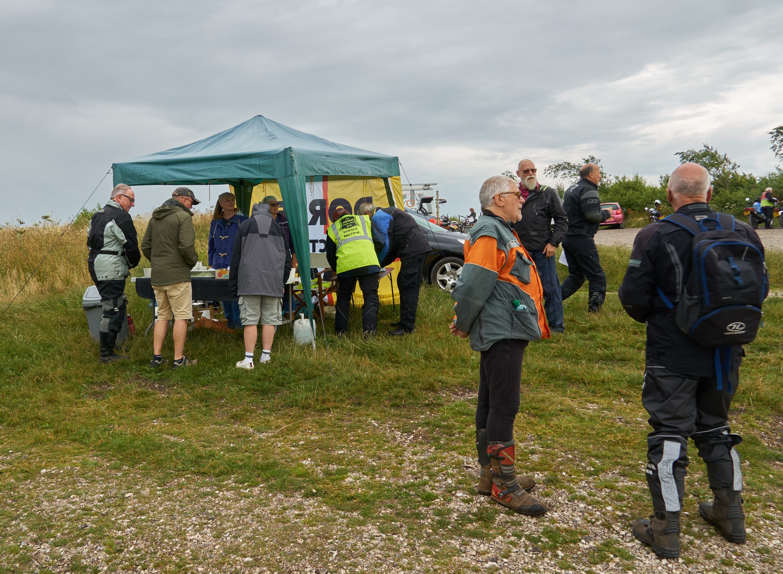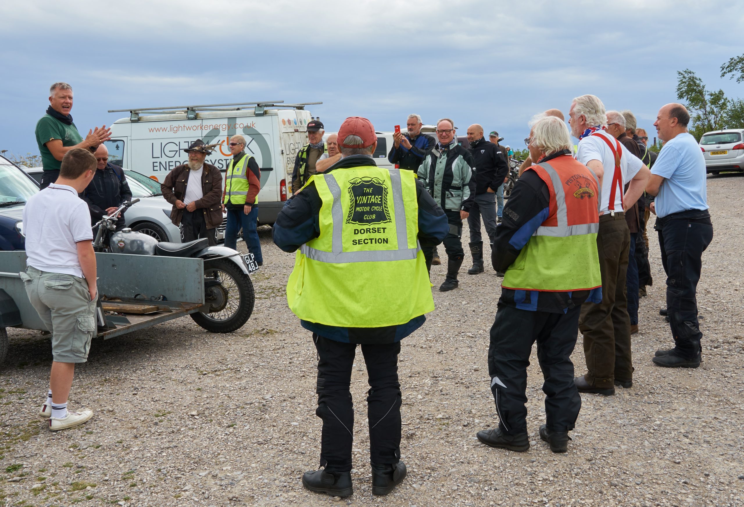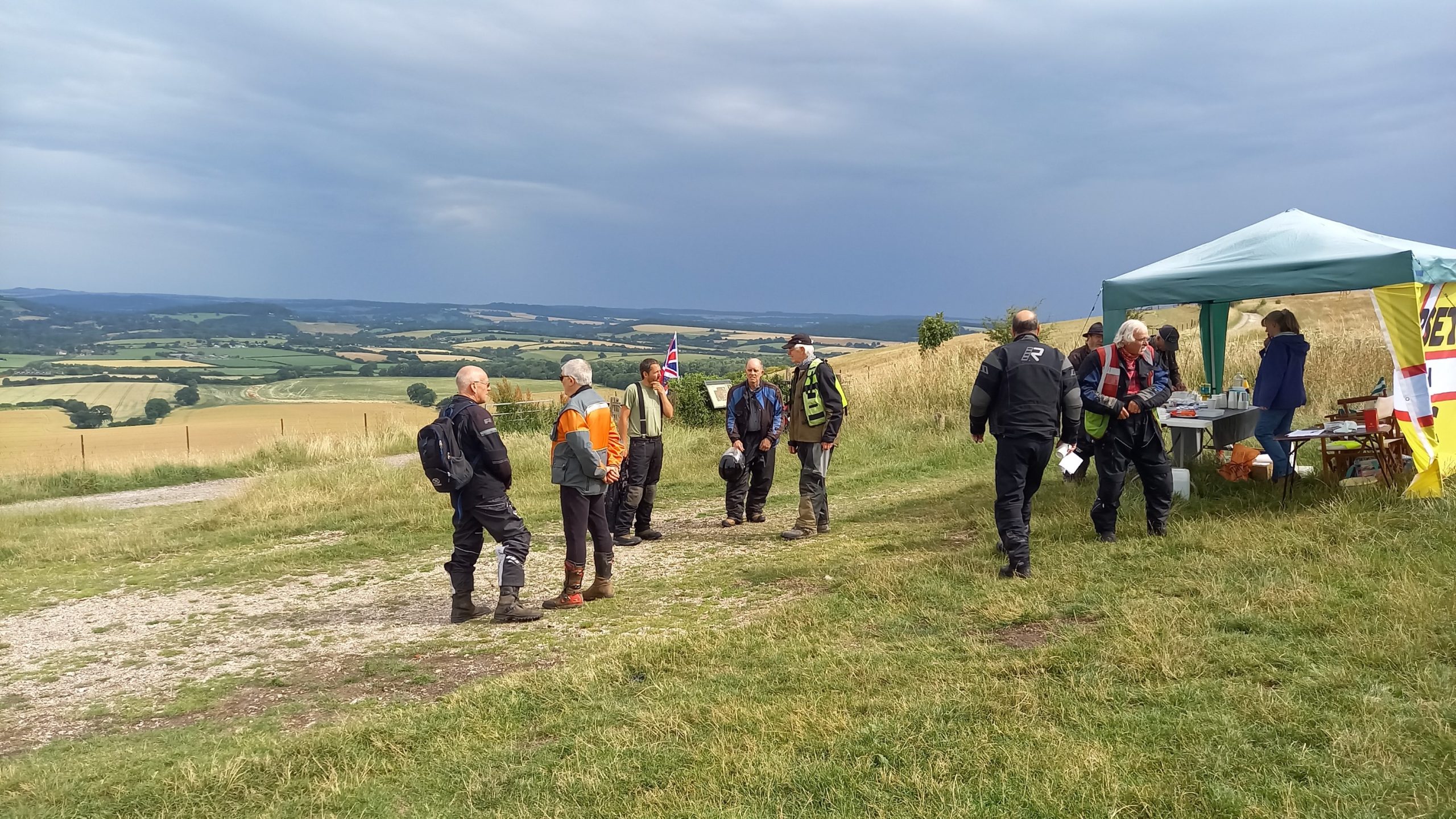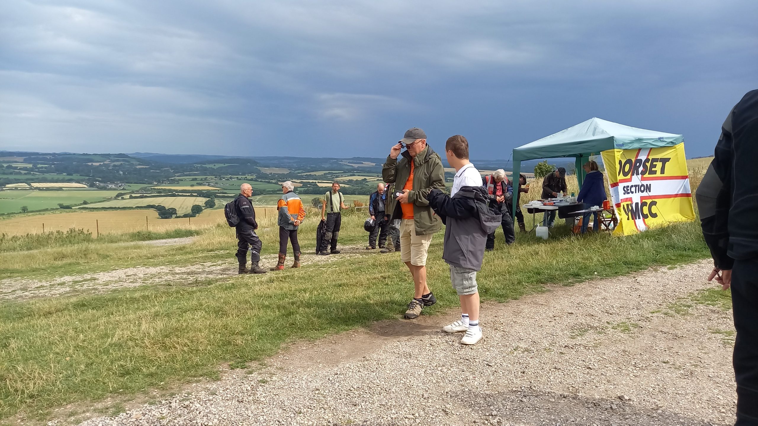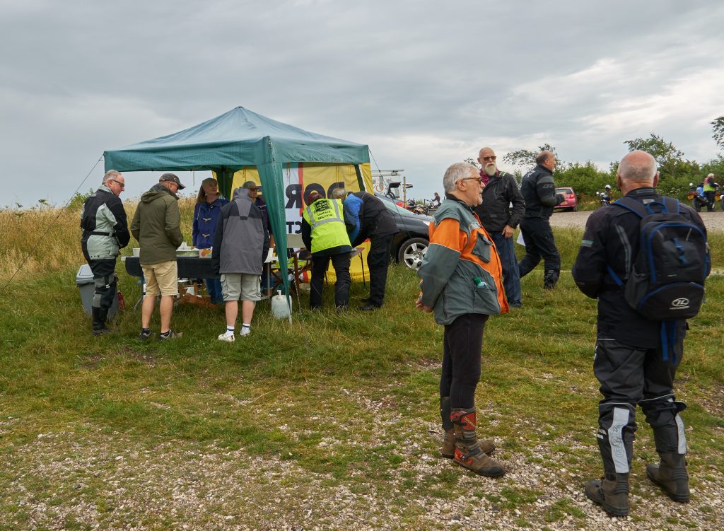 Under threatening-looking skies, following some earlier rain, a healthy turnout of 28 riders riders gathered at the start for the second running of our premier (only!) off-road event, the Dorset Dakar! Suitably fortified with tea and cake, graciously provided by Alison Rae, they set out in pairs, brilliantly waved off by our youngest member, Tom.
