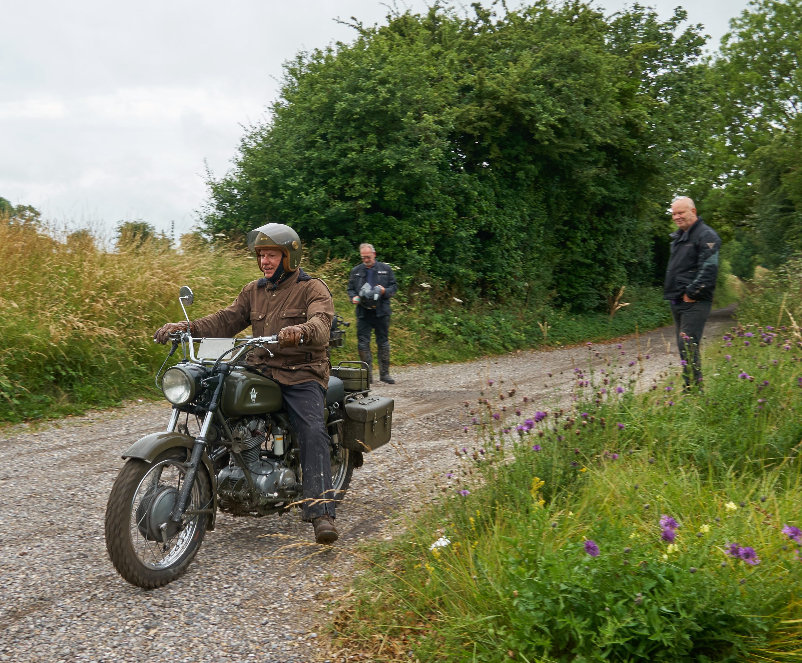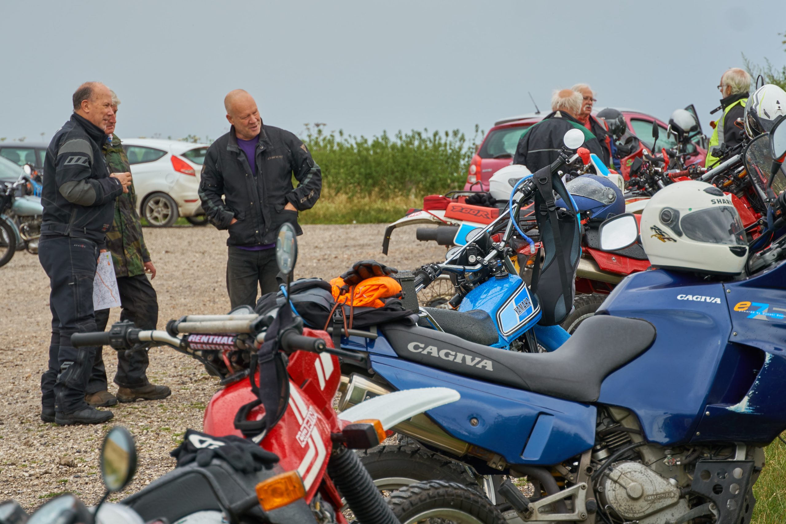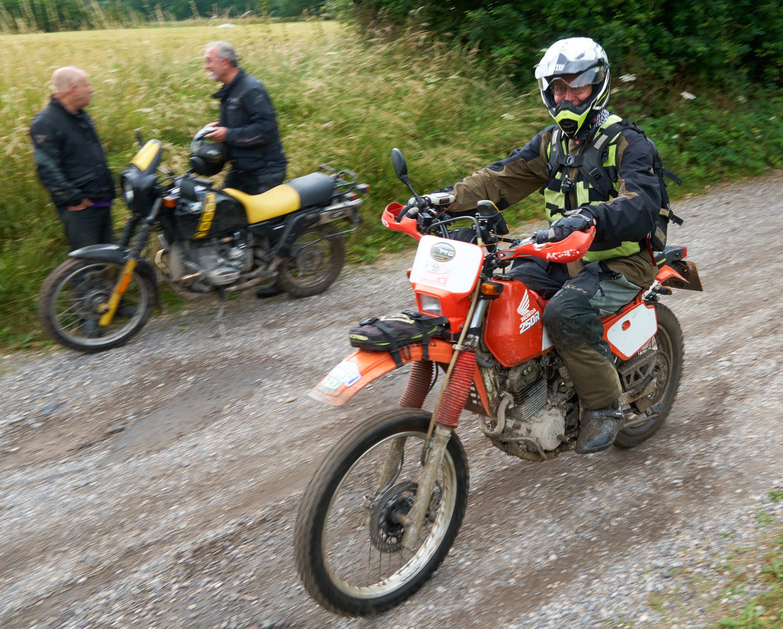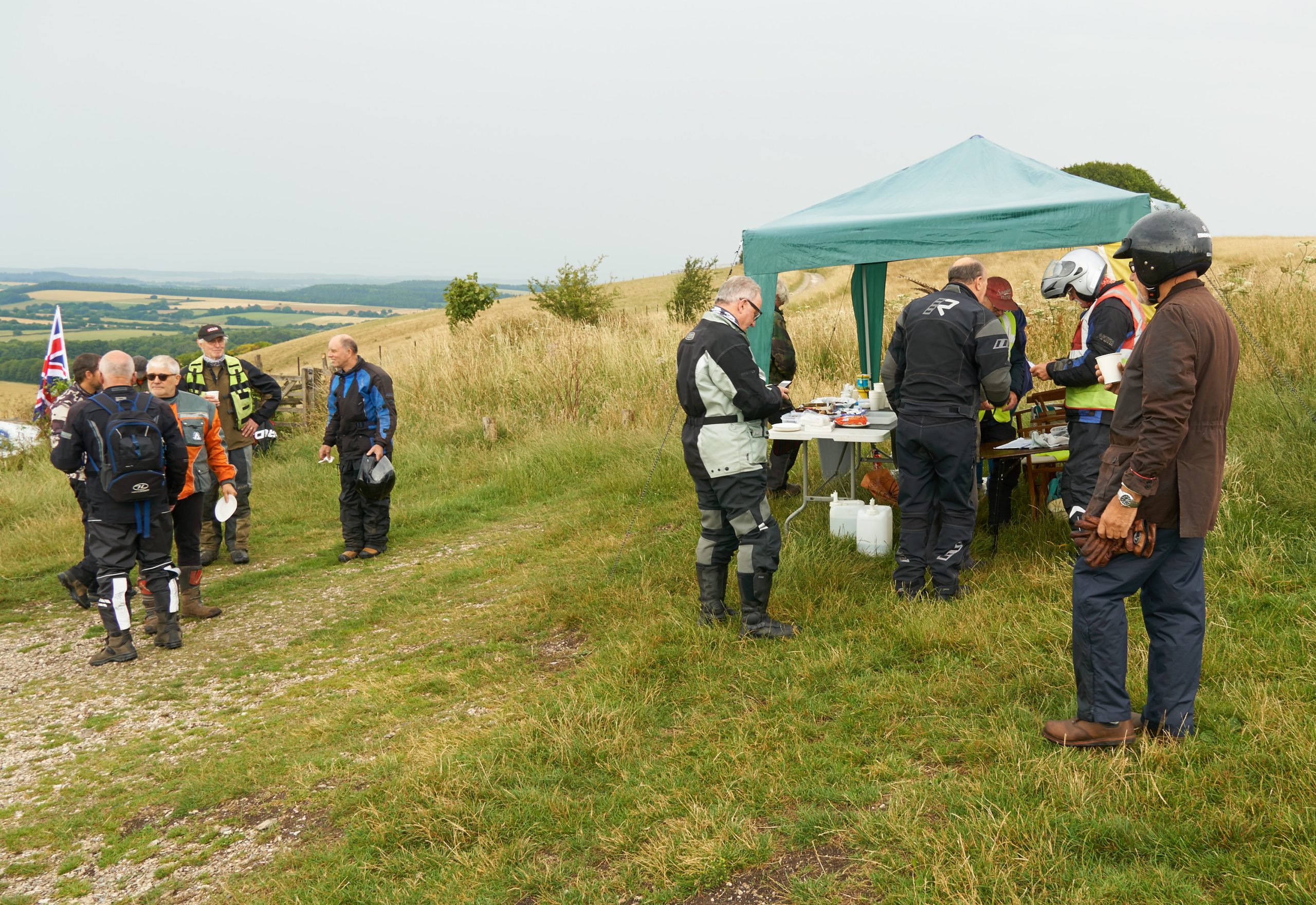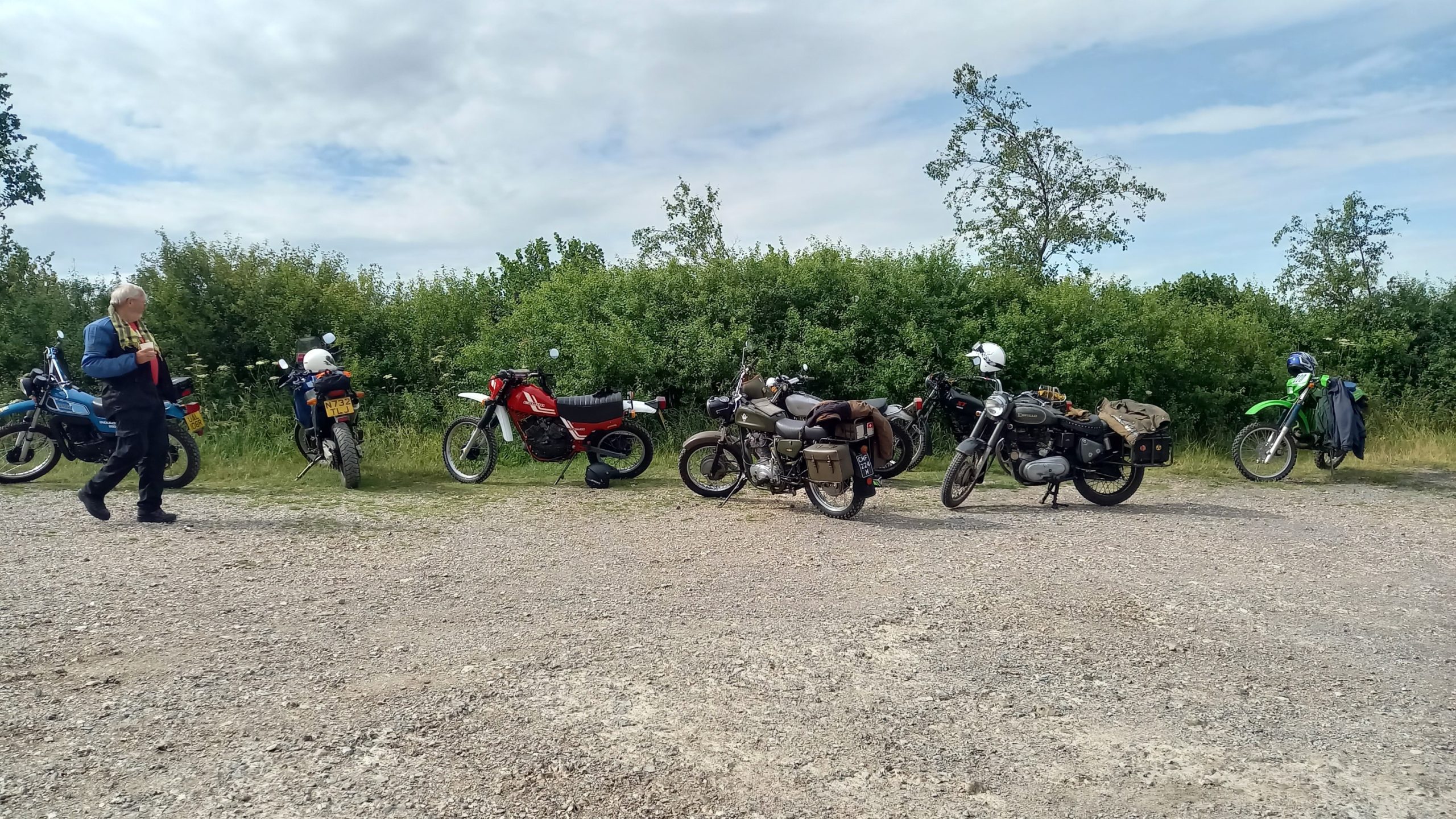 Under threatening-looking skies, following some earlier rain, a healthy turnout of 28 riders riders gathered at the start for the second running of our premier (only!) off-road event, the Dorset Dakar! Suitably fortified with tea and cake, graciously provided by Alison Rae, they set out in pairs, brilliantly waved off by our youngest member, Tom.