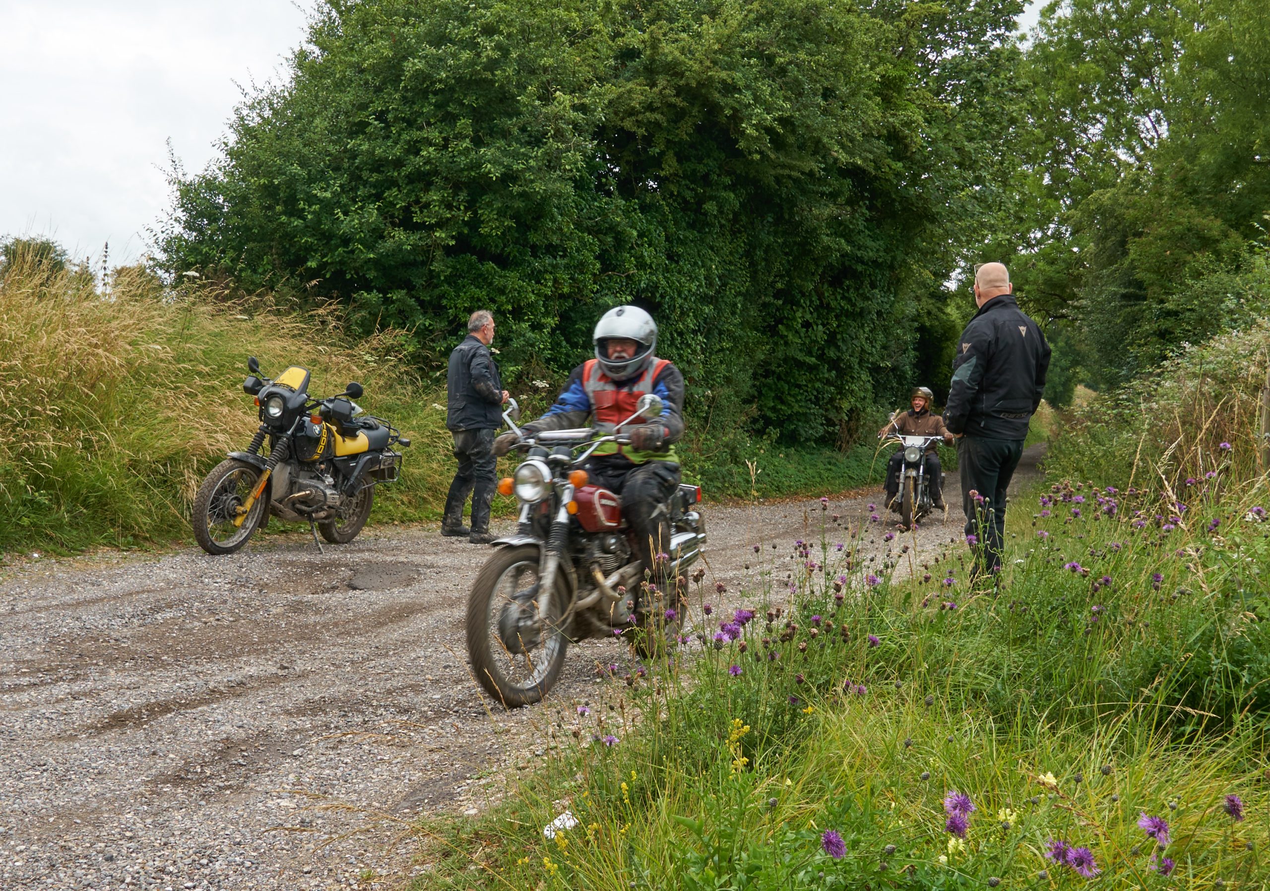Despite the demanding-sounding title, the DD is actually designed to be a fun and non-competitive off road run, with novices and vaguely unsuitable bikes being especially welcome. This year didn’t disappoint, as well as the pukka dirt machines, we also had several road bikes, including a stock Enfield Bullet and a pre-unit t120 Bonneville!