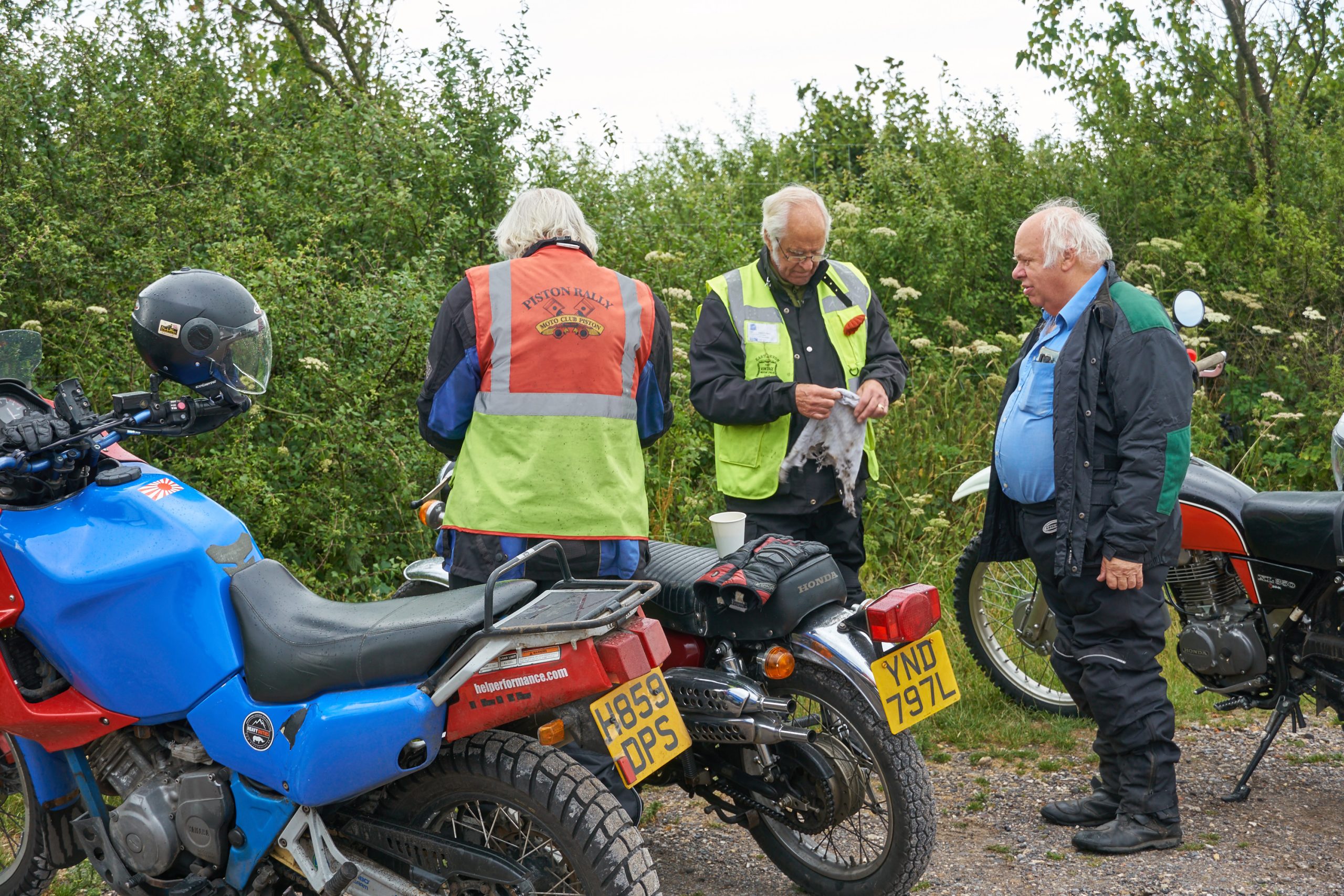 In total 28 riders signed on, not too bad with the weather being very changeable but I feel not as bad as forecast, the donations to Dorset & Somerset Air Ambulance have not been counted as yet but feels pretty weighty , so hope fully a good sum to pass on to a very worthy cause. Due to the weather riding conditions were more challenging than I had hoped for the time of year, and caused the Clovelly spoon of the Donkey to be awarded To Bernard Jones mounted (mostly) on a Honda 350cc who valiantly tested one of Newtons laws 5 times, well done !