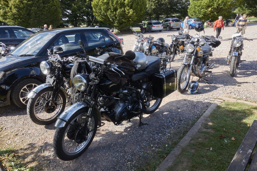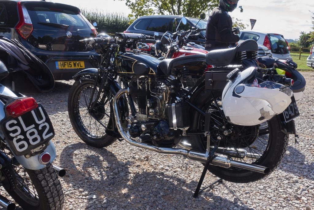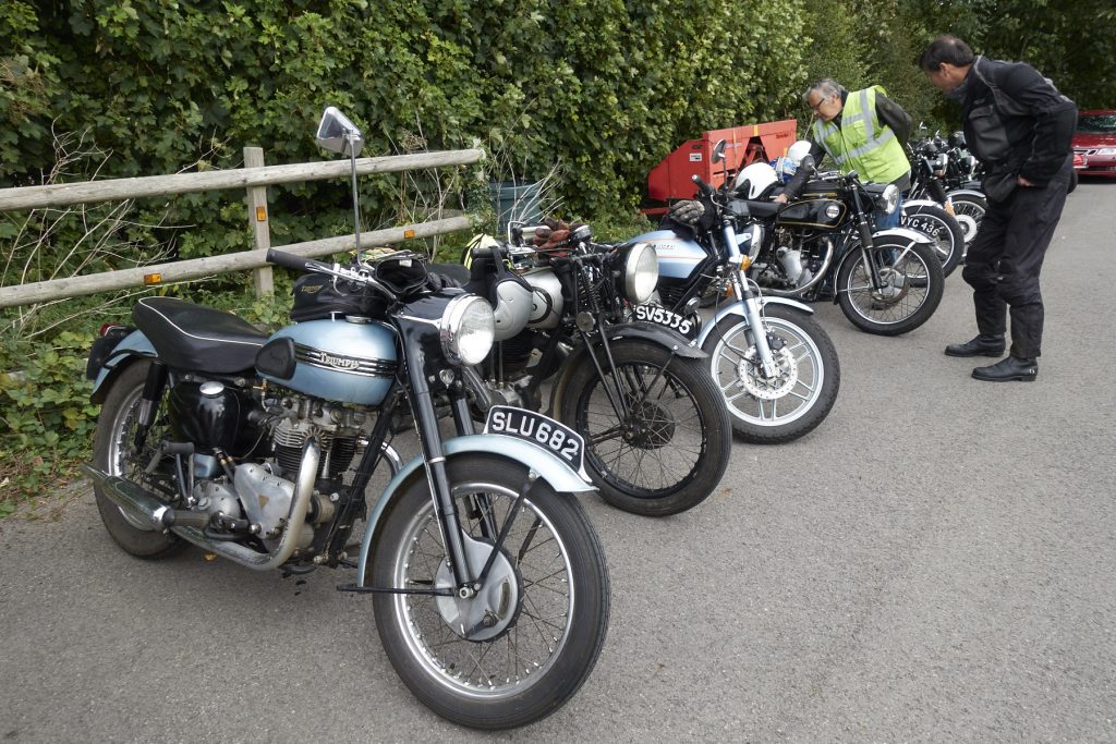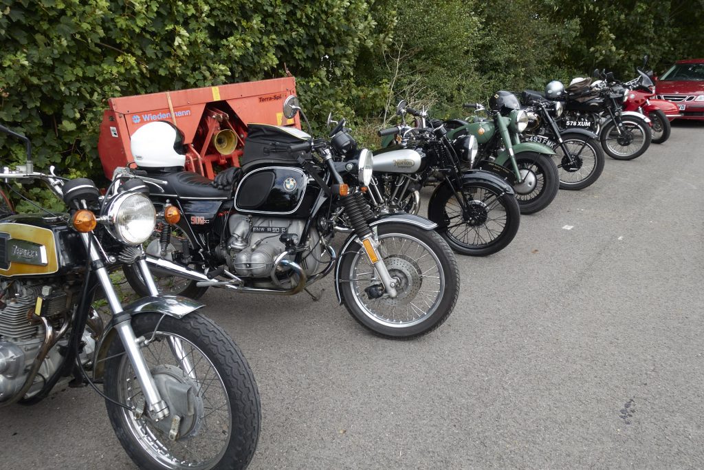 A fantastic range of bikes turned up at Hinton St. Mary’s village hall for yesterday’s Last of the Summer Wine run. Bob Hoare tells me 36 people signed on.
