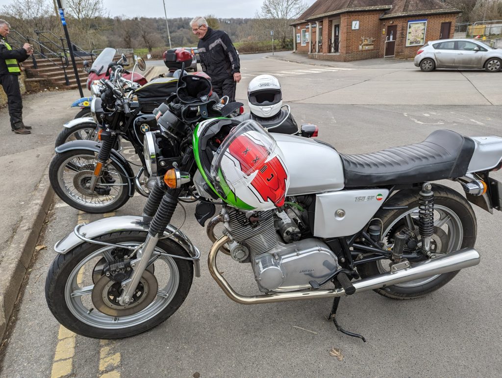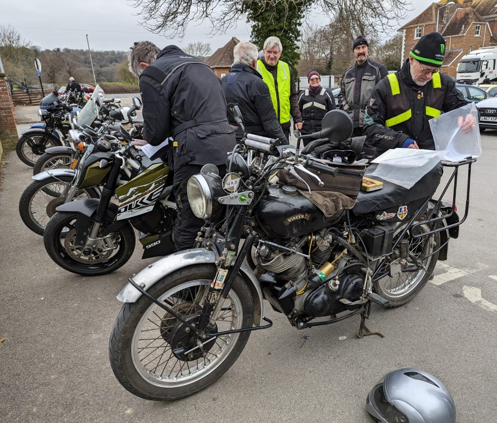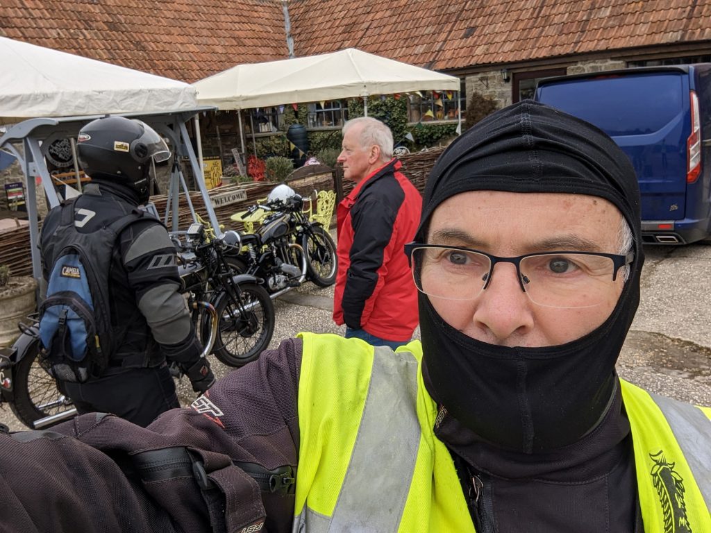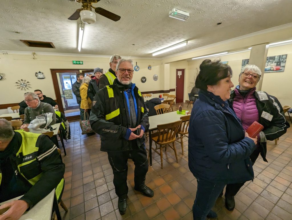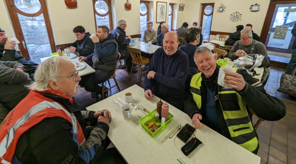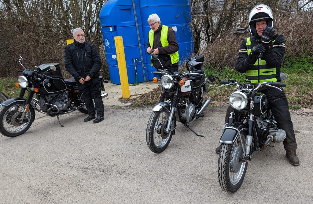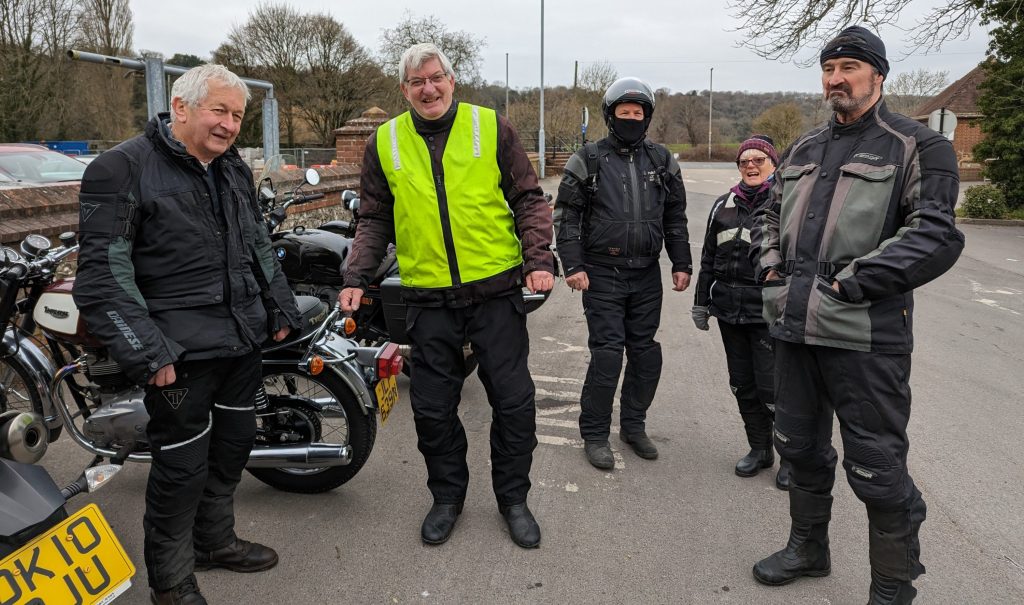 11 signed on for the run, not a disappointment, but I expected a bigger turnout. Something to do with 5°C air temperature perhaps. It was on the chilly side, in fact it only warmed to 6.5°C, which was definitely cooler than my February Winter run. Ray Dickinson had the answer with a string vest, I had my new Gerbing electric gloves, powered by the bikes battery. At least the road were dry and fairly clean, so we could crack on and concentrate on riding and forget the temperature.
