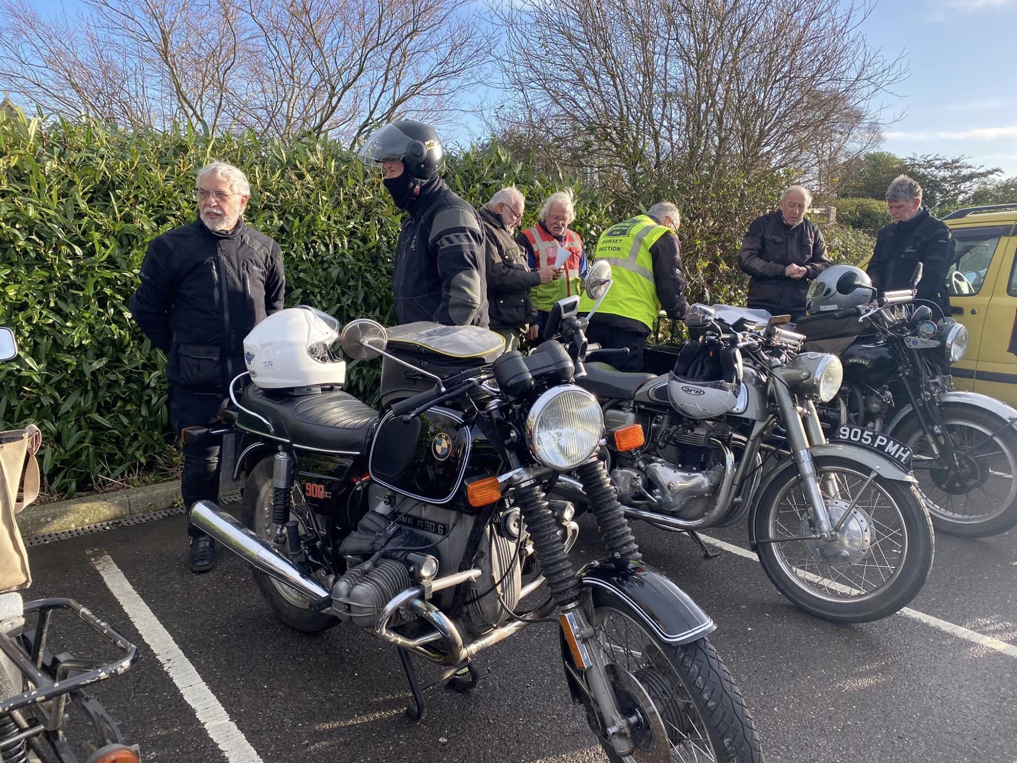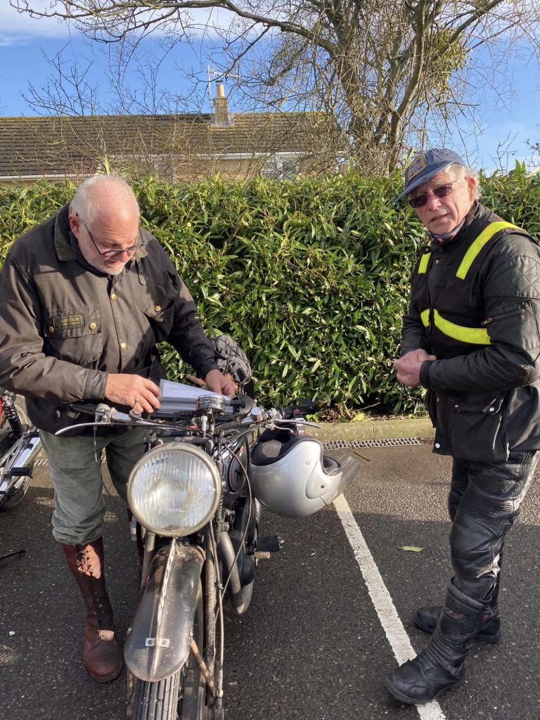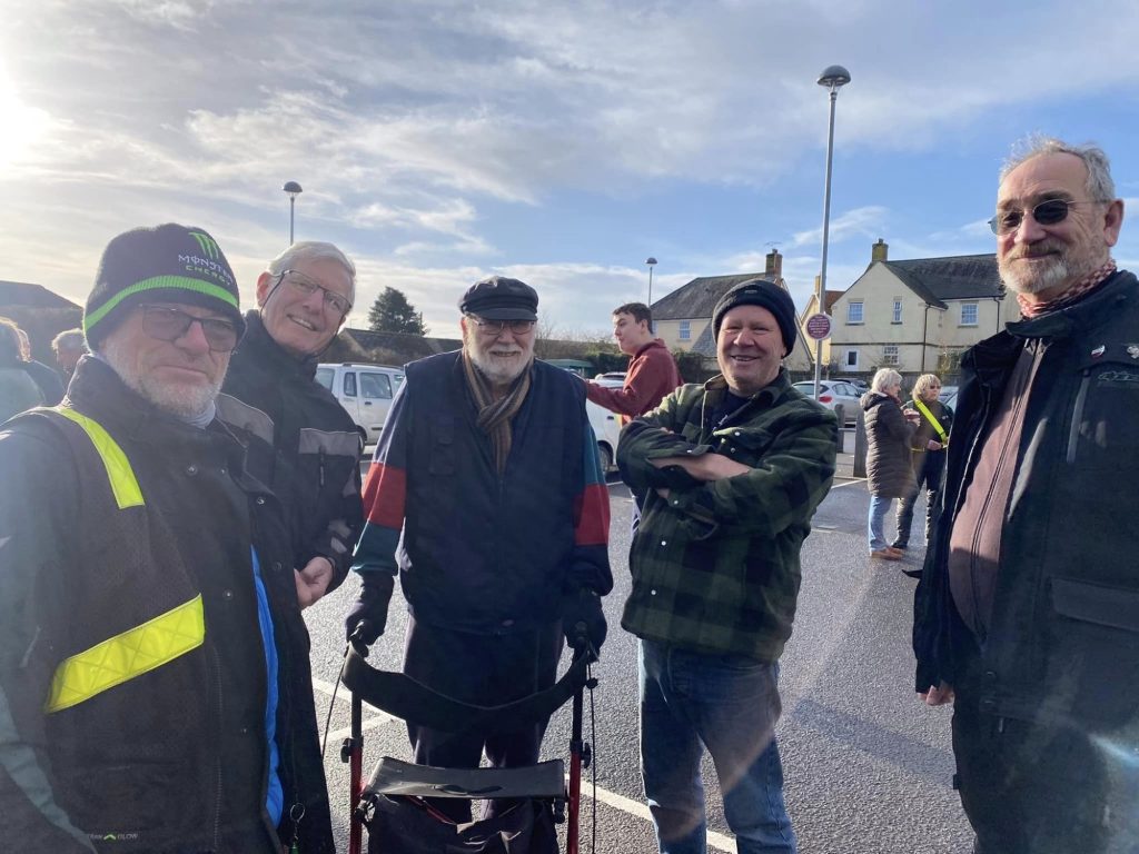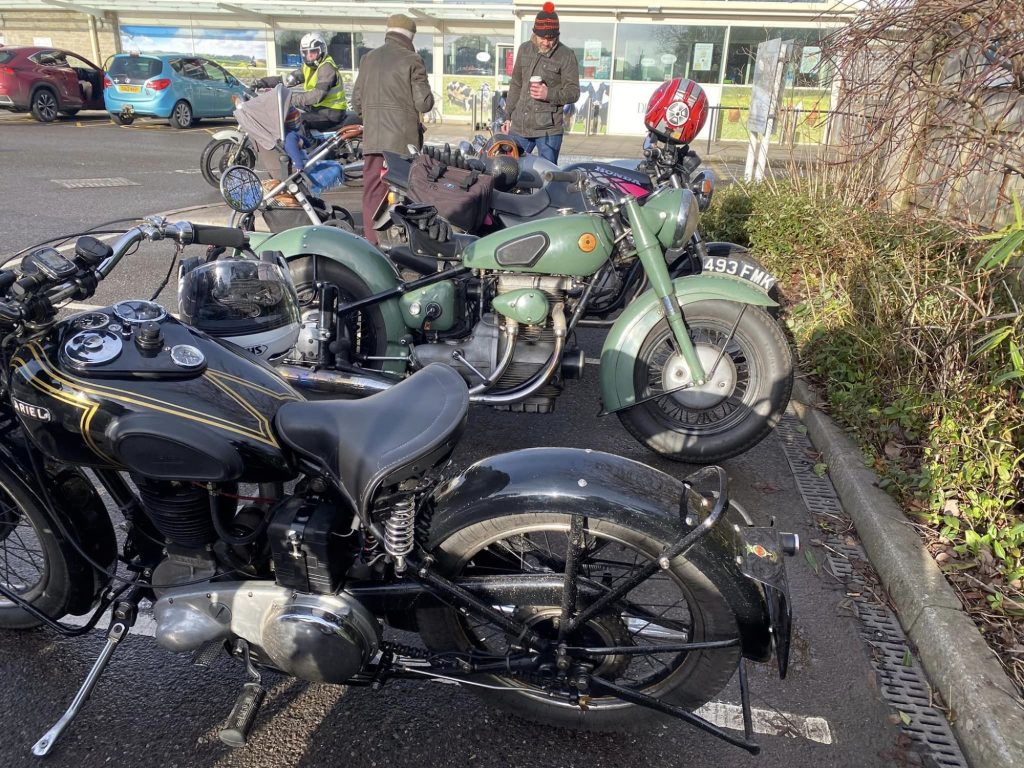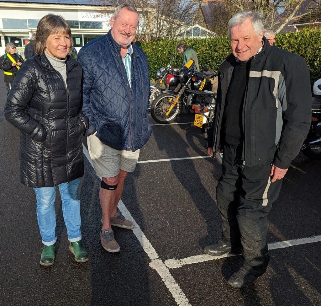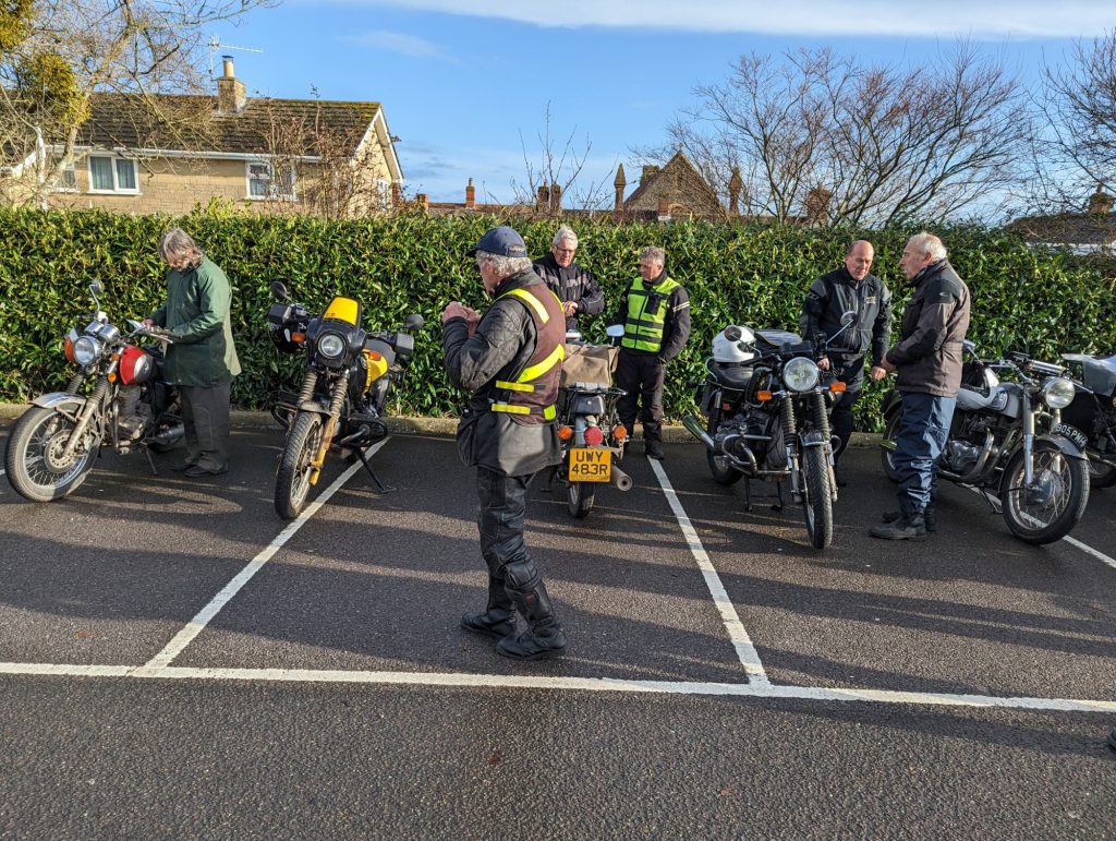 A surprisingly good turn out, 17 signed on at Dikes supermarket car park. The weather had been pretty grim leading up to Sunday, So much so that I revised my route to avoid two planned river bridge crossings and one ford. The ford was at Fifehead Neville so we crossed the river Diveilish further upstream via a bridge on Zore Lane. The first planned bridge being at Hammon which now has gates to prevent crossing when the river Stour is in flood. We went via Child Oakford to Manston. The second Stour crossing was to be at Trill bridge, a tributary of the river Stour on the road to Stour Row, so we preceded further north to loop round to Stour Row. I know Trill bridge well. When route planning a couple of years ago I came a cropper in flood water there. When I checked the route this year there was significant surface water on the main road to Shaftsbury, hence the red warning on my route sheet. This had dispersed but we found rather a lot of surface by Henstridge Airfield. So, it did not rain until we got back to Dikes but with all the surface water it was a good test for the quality of waterproofing of your ignition system!