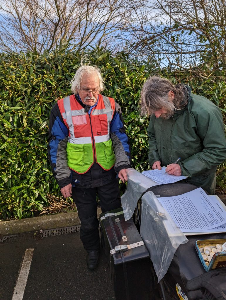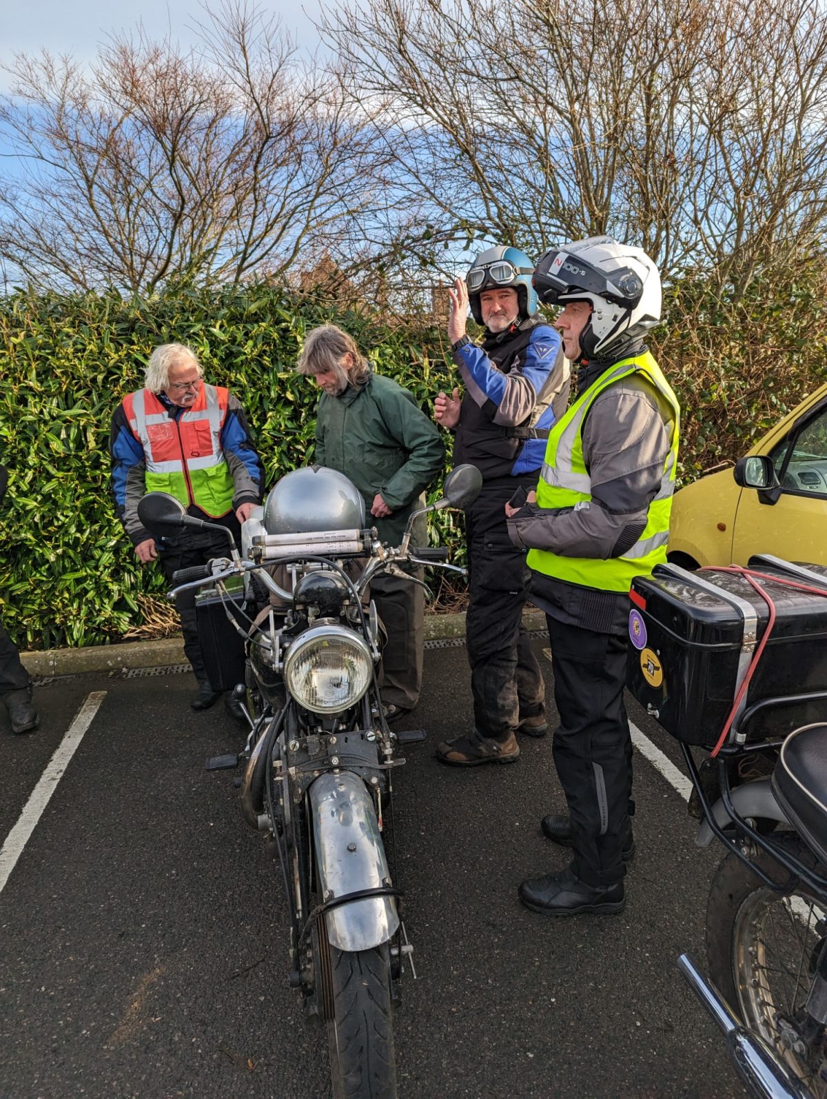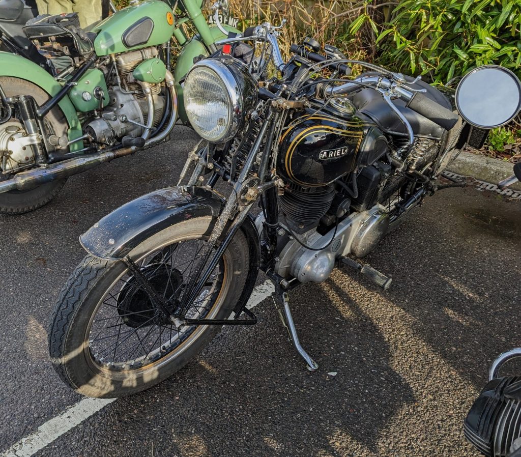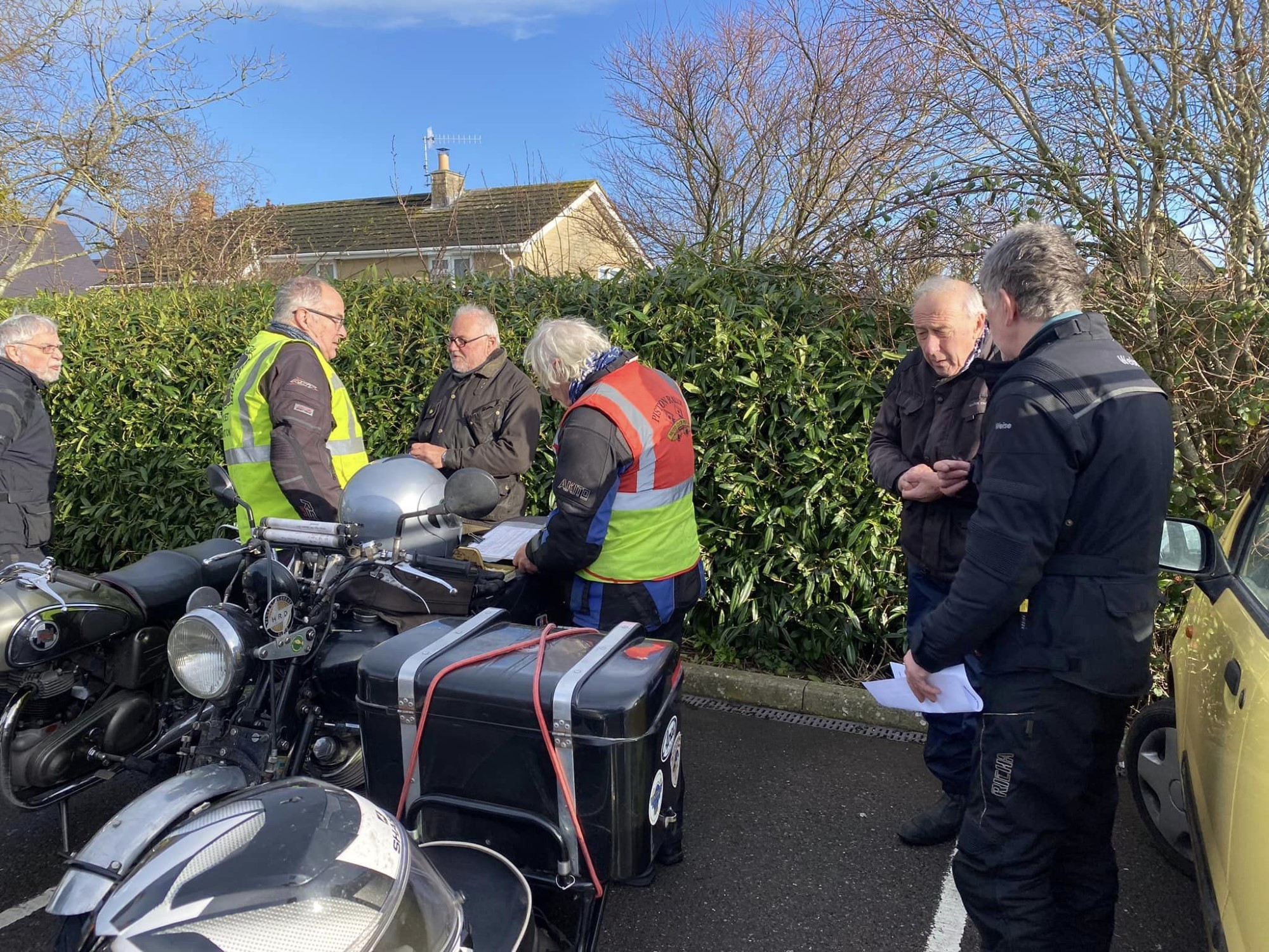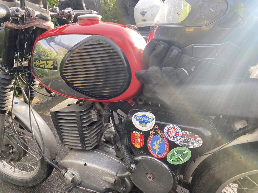 A surprisingly good turn out, 17 signed on at Dikes supermarket car park. The weather had been pretty grim leading up to Sunday, So much so that I revised my route to avoid two planned river bridge crossings and one ford. The ford was at Fifehead Neville so we crossed the river Diveilish further upstream via a bridge on Zore Lane. The first planned bridge being at Hammon which now has gates to prevent crossing when the river Stour is in flood. We went via Child Oakford to Manston. The second Stour crossing was to be at Trill bridge, a tributary of the river Stour on the road to Stour Row, so we preceded further north to loop round to Stour Row. I know Trill bridge well. When route planning a couple of years ago I came a cropper in flood water there. When I checked the route this year there was significant surface water on the main road to Shaftsbury, hence the red warning on my route sheet. This had dispersed but we found rather a lot of surface by Henstridge Airfield. So, it did not rain until we got back to Dikes but with all the surface water it was a good test for the quality of waterproofing of your ignition system!