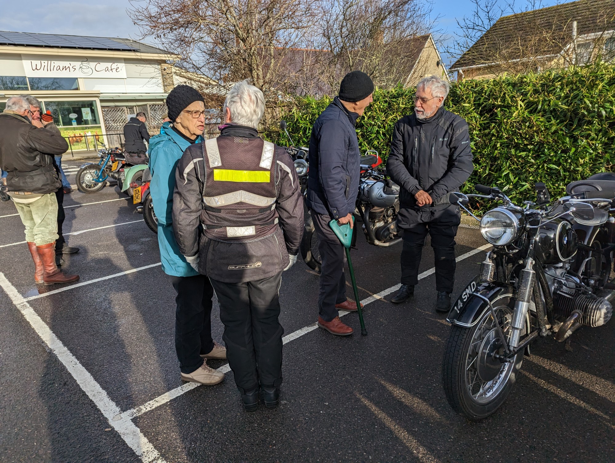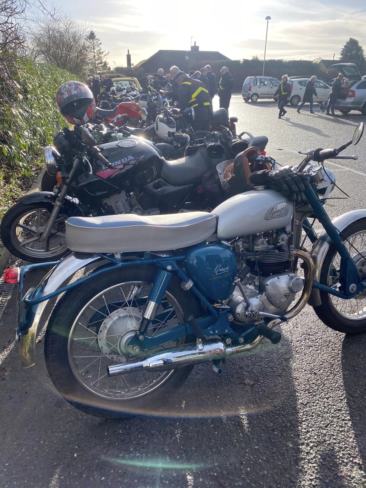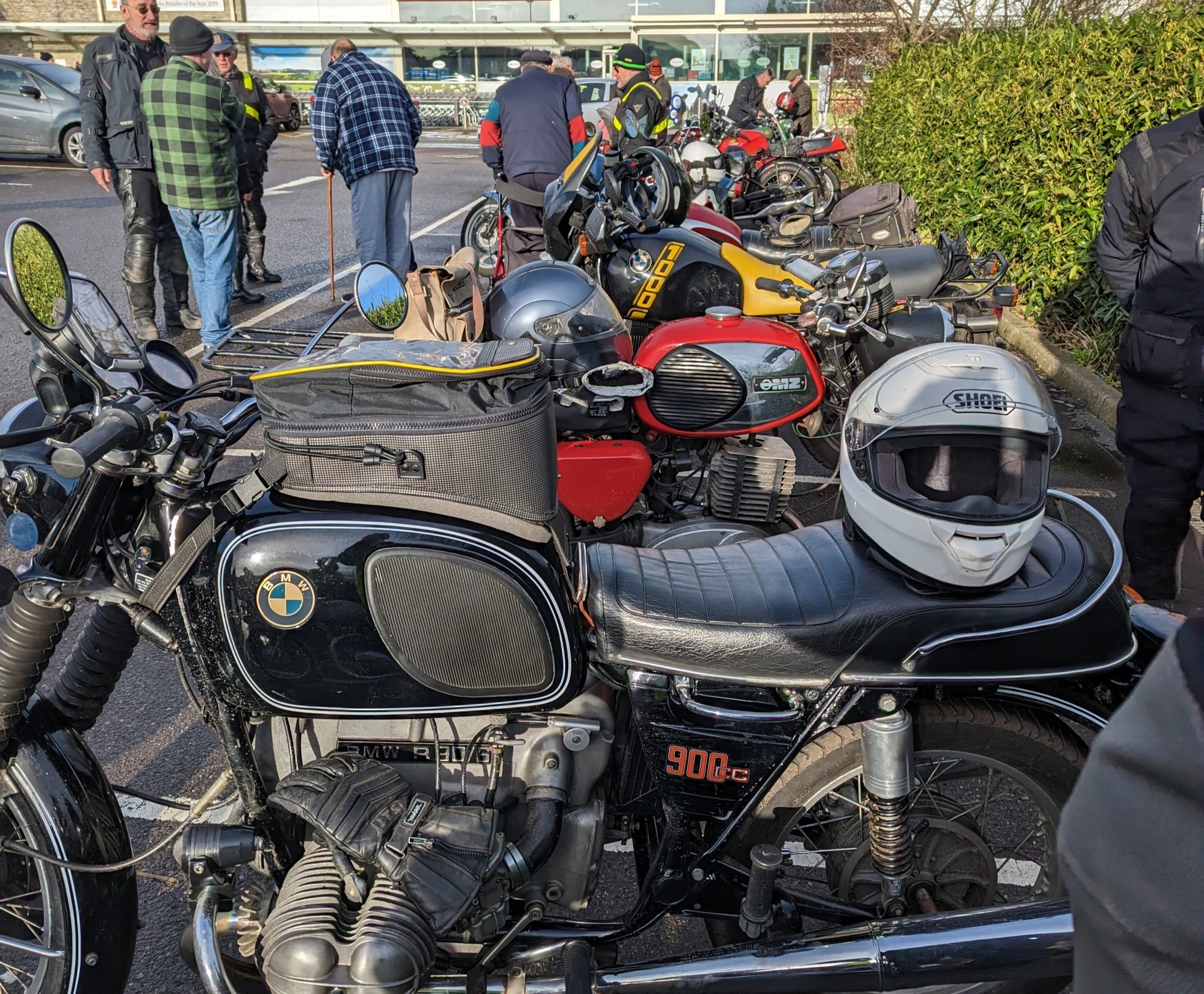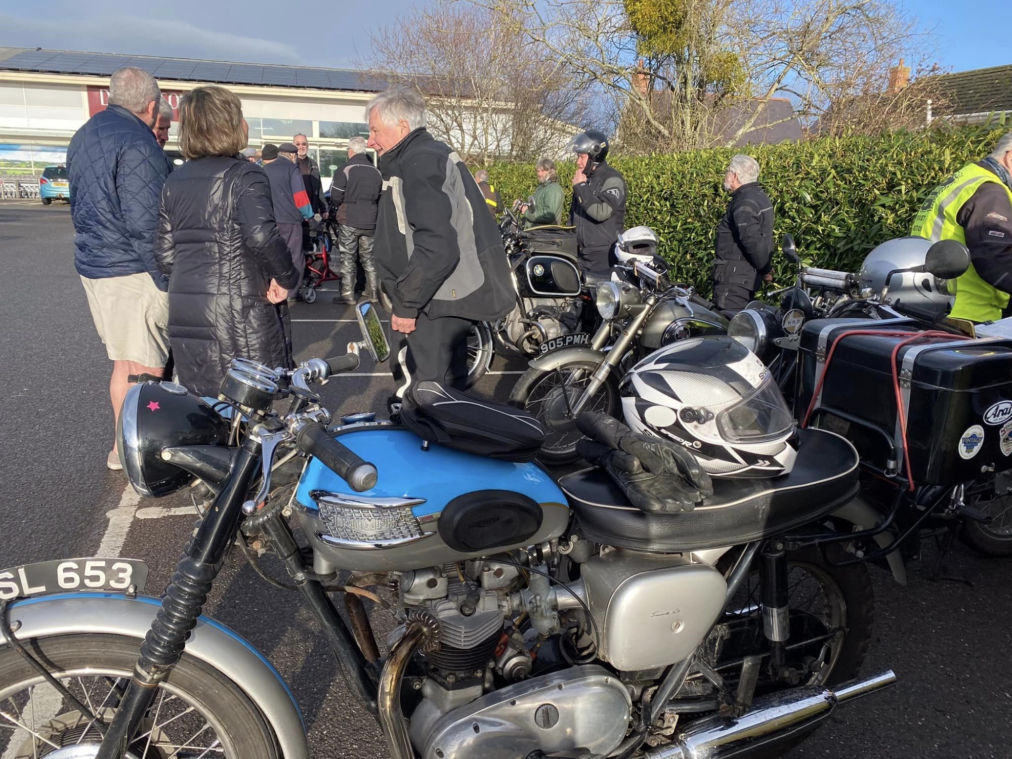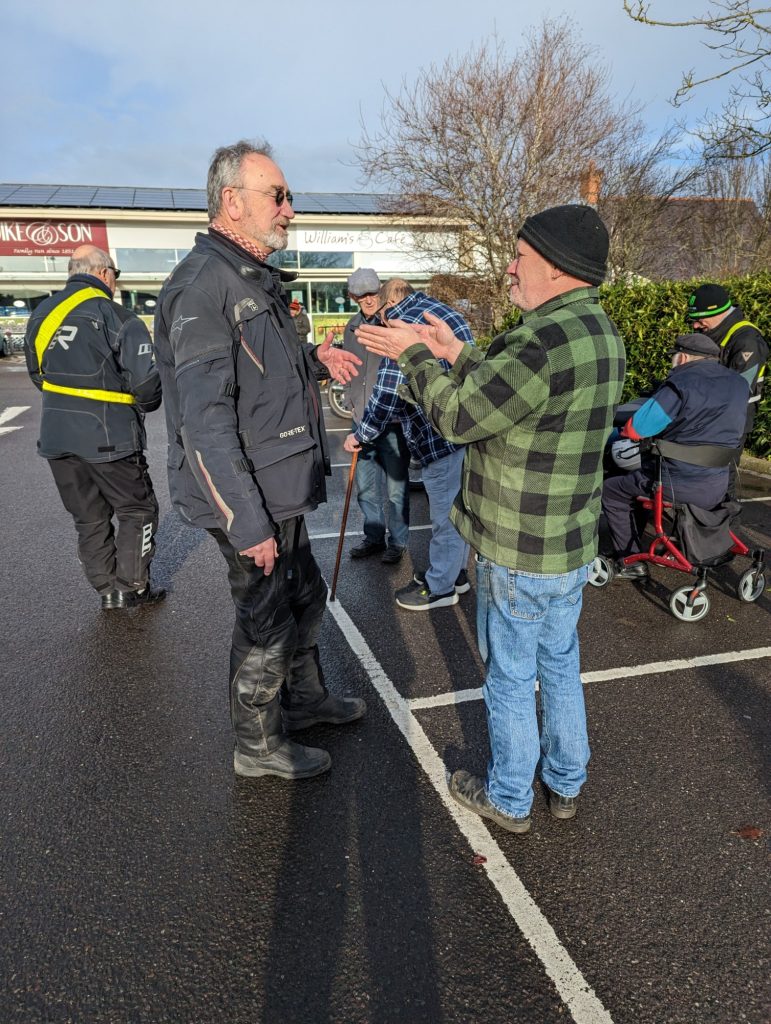 A surprisingly good turn out, 17 signed on at Dikes supermarket car park. The weather had been pretty grim leading up to Sunday, So much so that I revised my route to avoid two planned river bridge crossings and one ford. The ford was at Fifehead Neville so we crossed the river Diveilish further upstream via a bridge on Zore Lane. The first planned bridge being at Hammon which now has gates to prevent crossing when the river Stour is in flood. We went via Child Oakford to Manston. The second Stour crossing was to be at Trill bridge, a tributary of the river Stour on the road to Stour Row, so we preceded further north to loop round to Stour Row. I know Trill bridge well. When route planning a couple of years ago I came a cropper in flood water there. When I checked the route this year there was significant surface water on the main road to Shaftsbury, hence the red warning on my route sheet. This had dispersed but we found rather a lot of surface by Henstridge Airfield. So, it did not rain until we got back to Dikes but with all the surface water it was a good test for the quality of waterproofing of your ignition system!