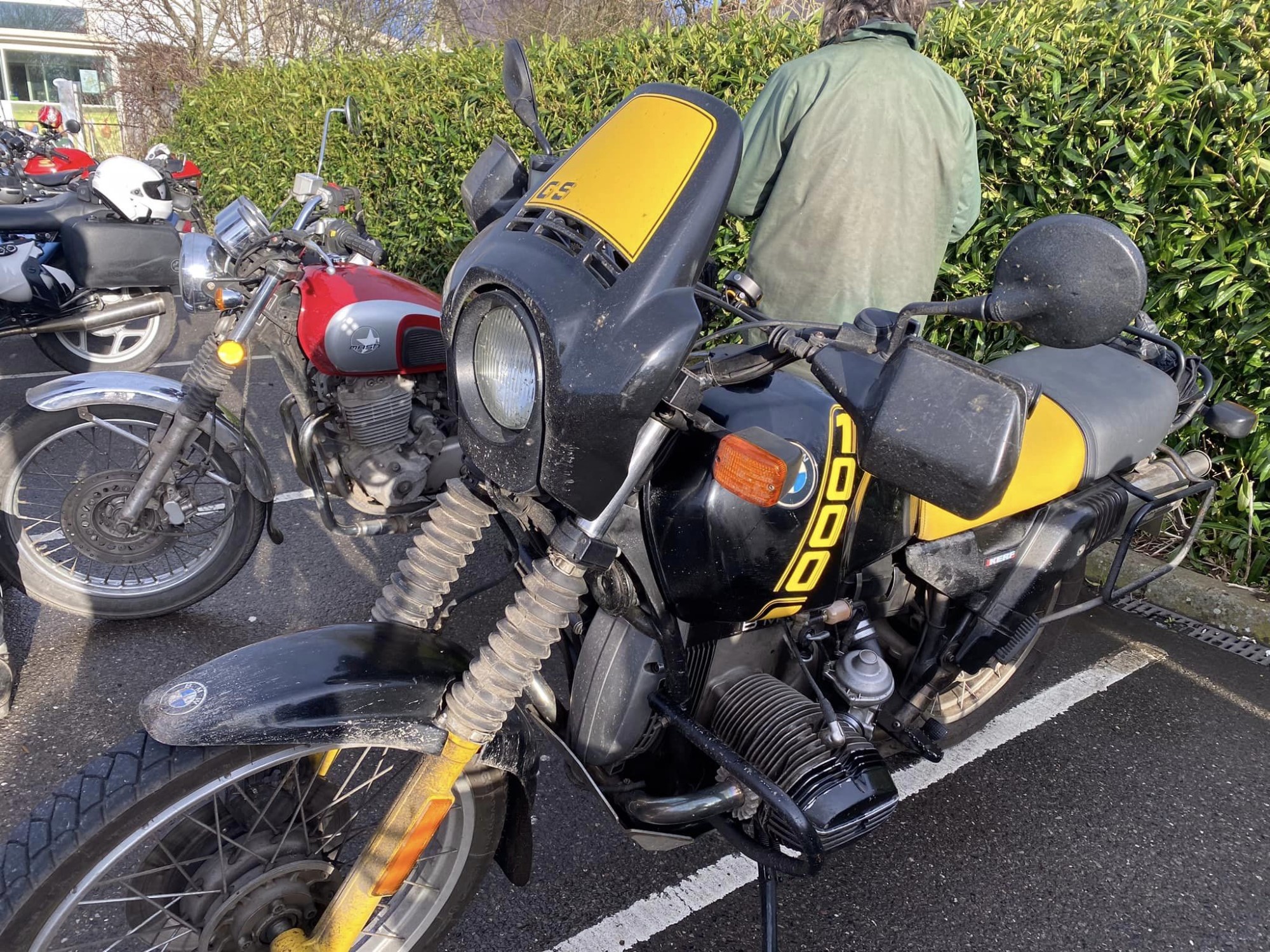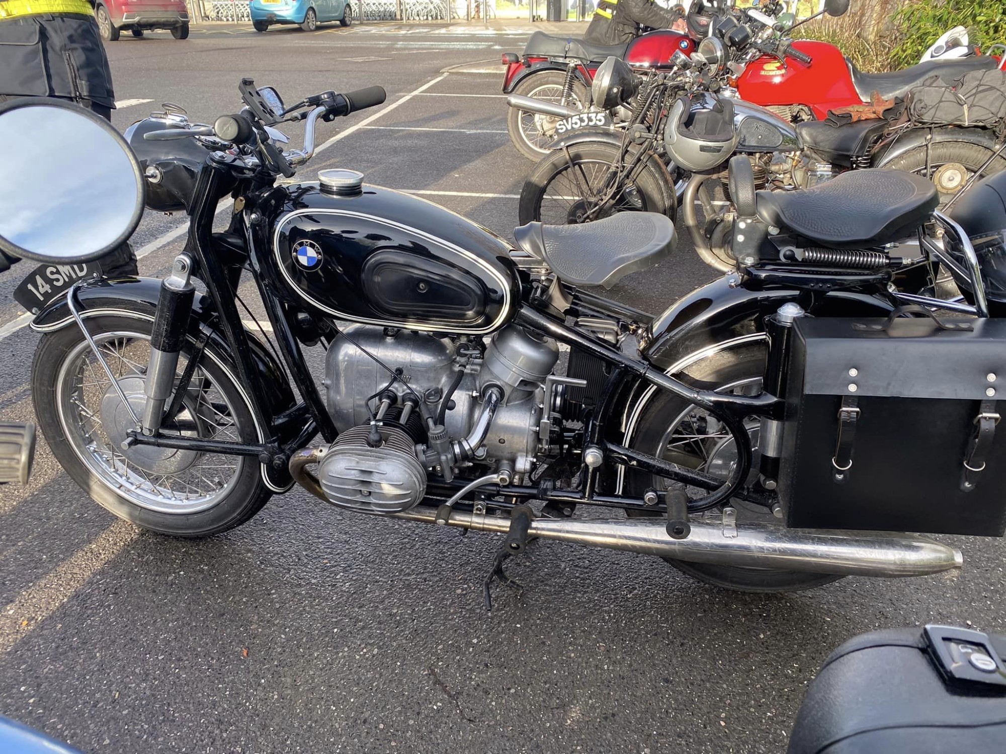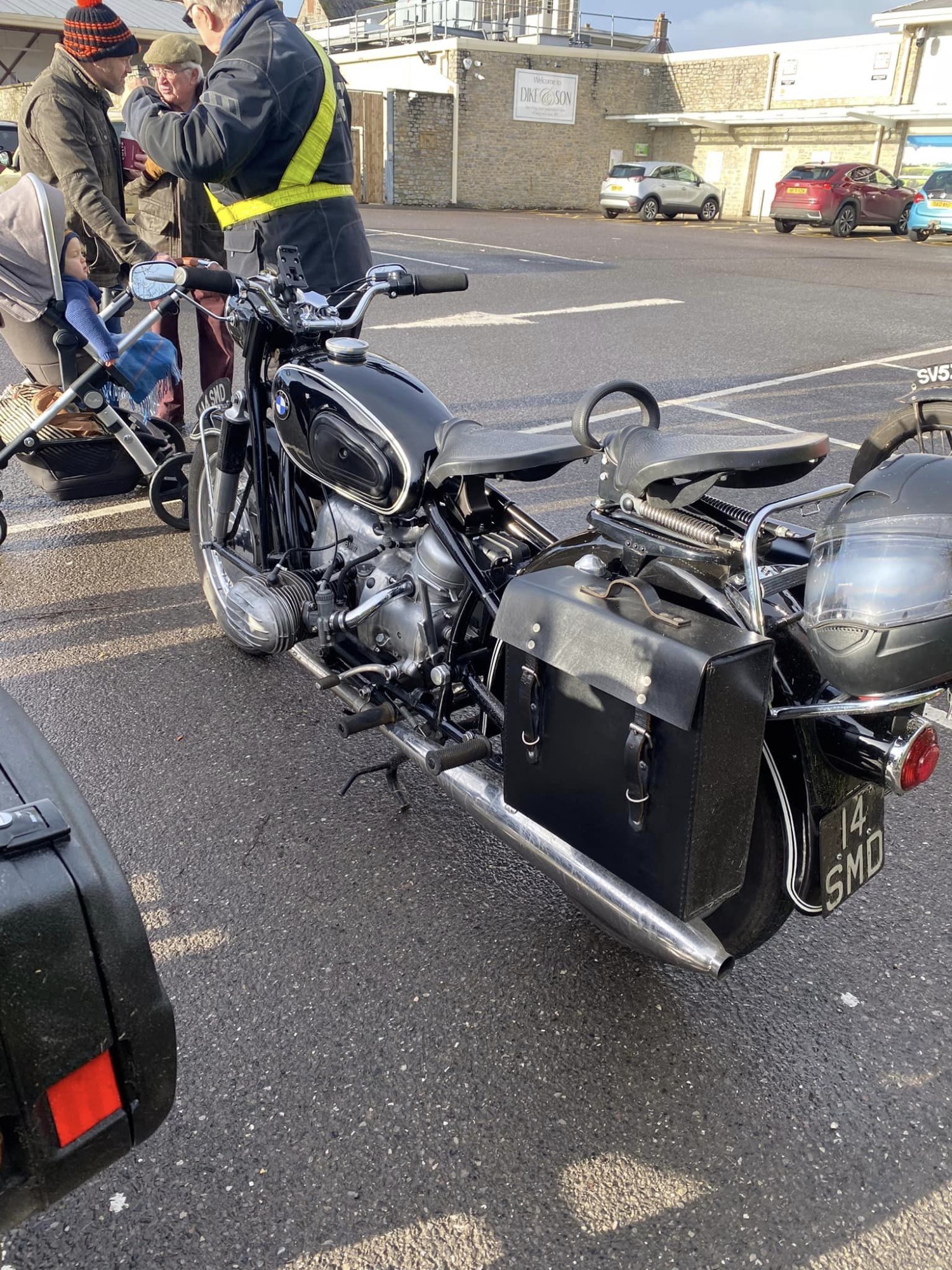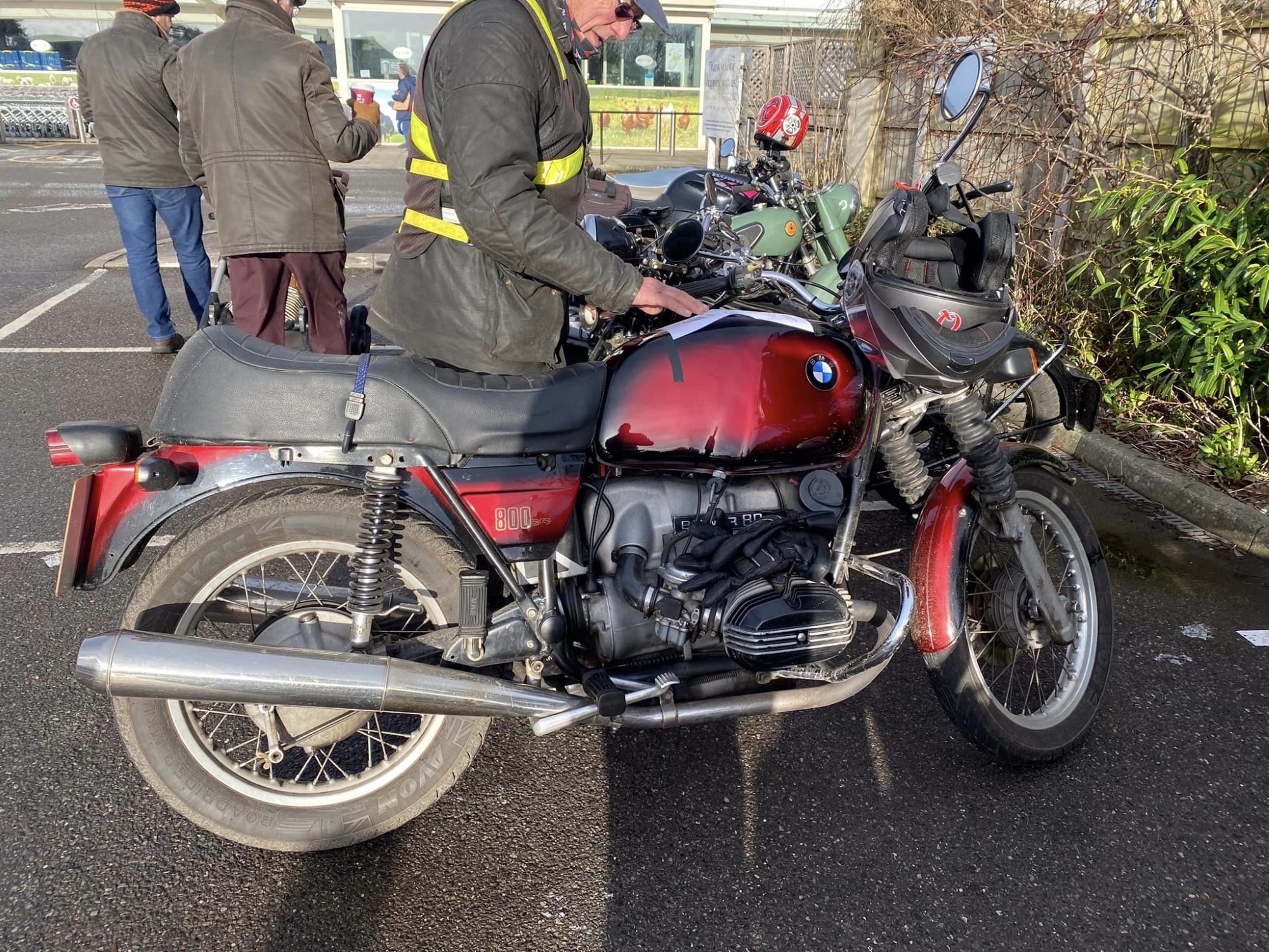 A surprisingly good turn out, 17 signed on at Dikes supermarket car park. The weather had been pretty grim leading up to Sunday, So much so that I revised my route to avoid two planned river bridge crossings and one ford. The ford was at Fifehead Neville so we crossed the river Diveilish further upstream via a bridge on Zore Lane. The first planned bridge being at Hammon which now has gates to prevent crossing when the river Stour is in flood. We went via Child Oakford to Manston. The second Stour crossing was to be at Trill bridge, a tributary of the river Stour on the road to Stour Row, so we preceded further north to loop round to Stour Row. I know Trill bridge well. When route planning a couple of years ago I came a cropper in flood water there. When I checked the route this year there was significant surface water on the main road to Shaftsbury, hence the red warning on my route sheet. This had dispersed but we found rather a lot of surface by Henstridge Airfield. So, it did not rain until we got back to Dikes but with all the surface water it was a good test for the quality of waterproofing of your ignition system!