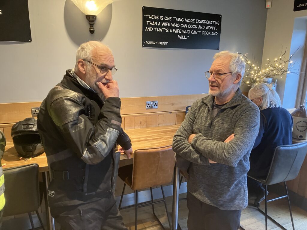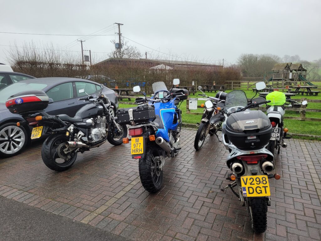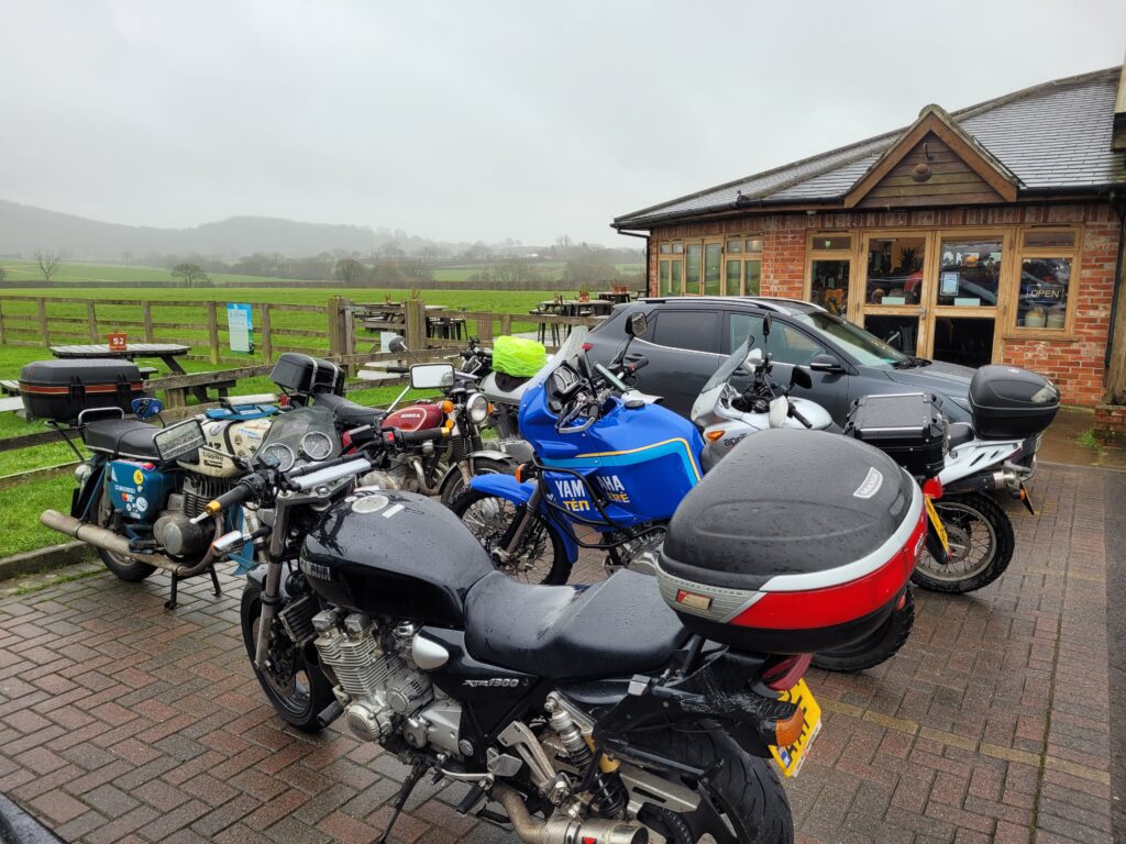 Call me a fair weather rider but after getting drenched on the way to The Udder I didn’t fancy slithering round wet lanes – especially as the weather was forecast to get worse. I therefore made a strategic withdrawal. Full marks to those that did the route especially Colin who chose to ride a Yamaha XJR1300.