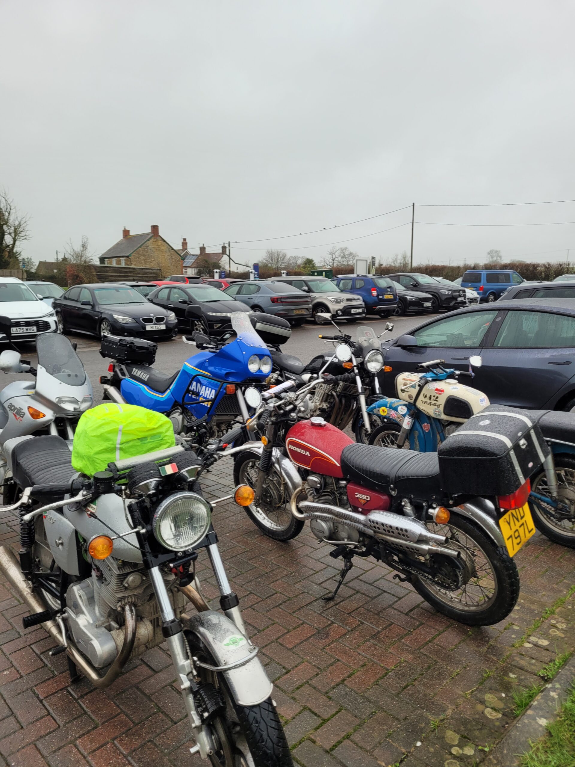 Call me a fair weather rider but after getting drenched on the way to The Udder I didn’t fancy slithering round wet lanes – especially as the weather was forecast to get worse. I therefore made a strategic withdrawal. Full marks to those that did the route especially Colin who chose to ride a Yamaha XJR1300.